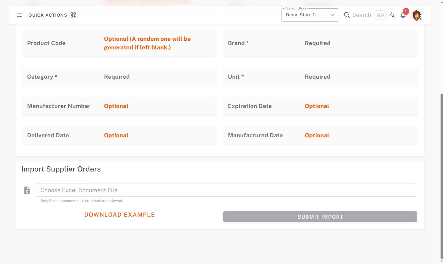 When setting up StockSmart, for products without a supplier connection set up, you can import your existing products all at once using an Excel spreadsheet.